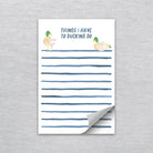 A notepad with a little attitude for your busiest days. This 4"x6" pad features an original watercolor painting of ducks with coordinating watercolor stripes and the playful phrase “things I have to ducking do.” Perfect for jotting down daily tasks, grocery lists, or reminders—with a smile.