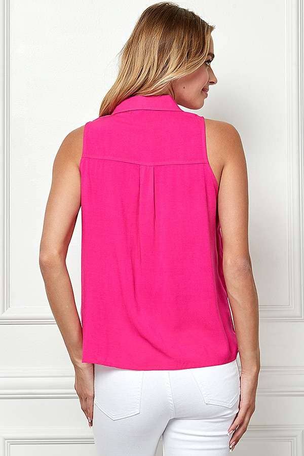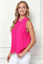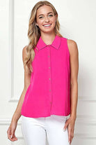 Add a splash of fun to your wardrobe with the Pretty Berrie Button Down Collared Tank. This playful tank features a charming button-down front and a crisp collar, perfect for mixing casual comfort with a touch of flirty style. Whether paired with jeans or a skirt, it’s your go-to piece for sunny days and spontaneous adventures.
